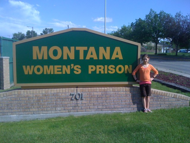 Outside our B&B in Red Lodge, Montana (note the mo...